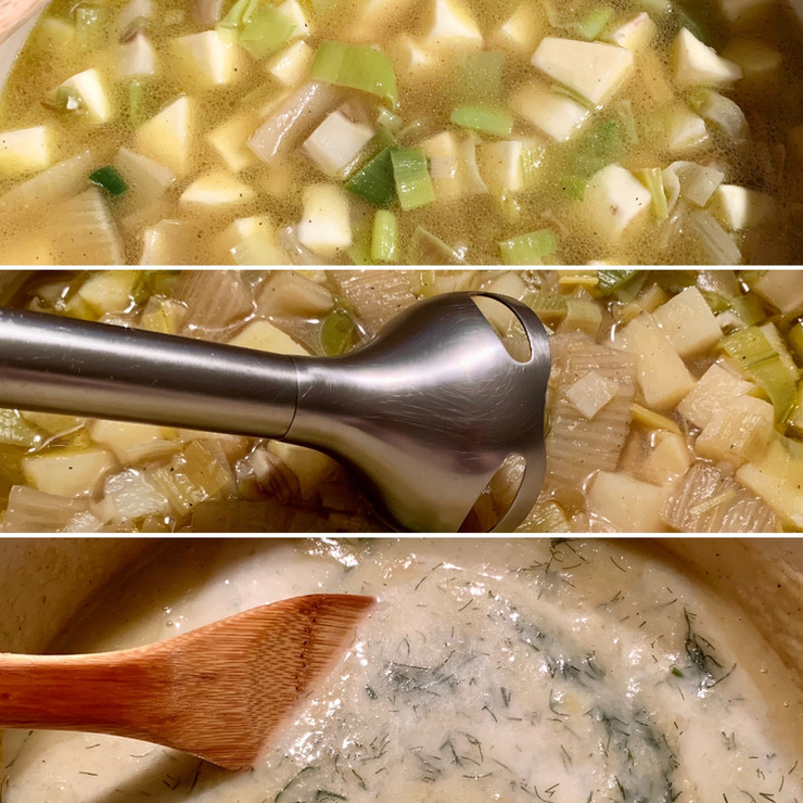 The temperature of a simmer is between 180-190°F (82-88°C) and it is characterized by small bubbles that rise to the surface of the liquid. Bacon, garlic, broth, peas, eggs, and parmesan cheese blend together to create a well-incorporated sauce